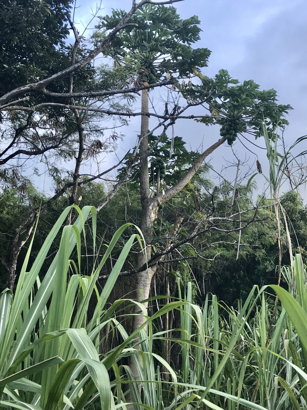 Nous avons prolongé le plaisir de ce sentier jusqu’au village de piton Sainte-Rose. Une randonnée d’environ 4 à 5 km. Nous avons décidé de prolonger un tout petit peu jusqu’à Port Ango avant de couper à travers champs direction la N2 puis Piton Sainte-Rose.